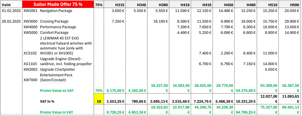 No refund is available for unused options from the package. Full payment must be completed upon the boat’s completion. If payment is delayed, the discount will be recharged.