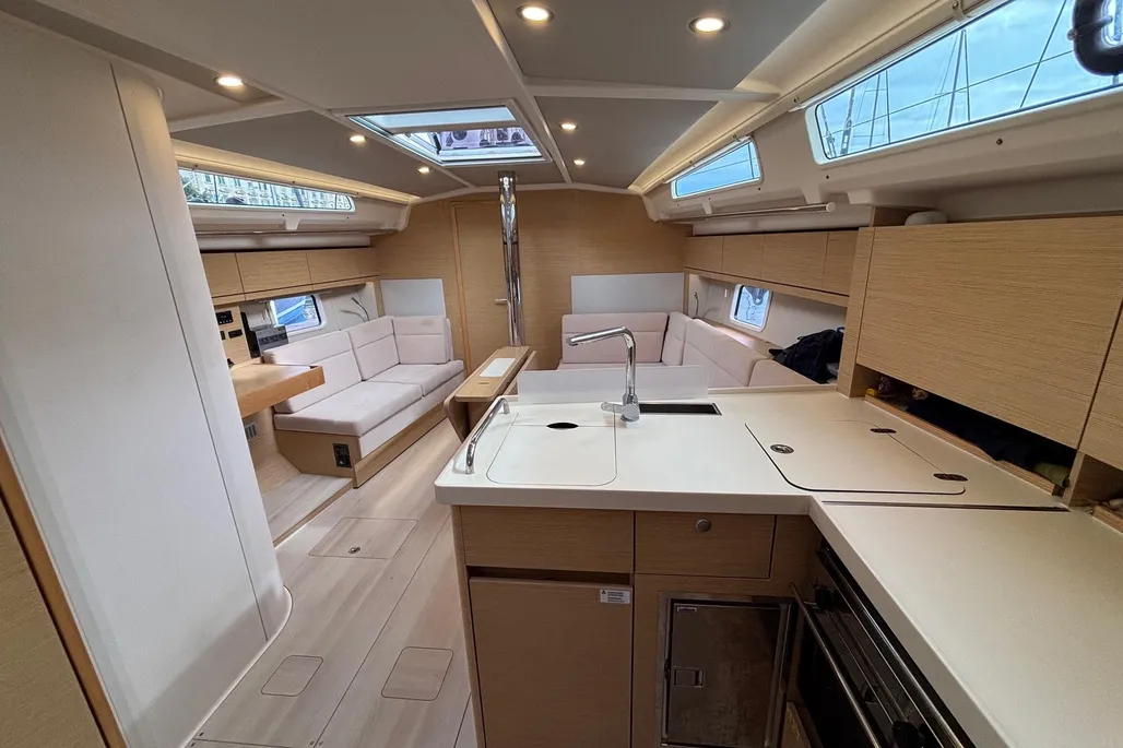 Designed for comfort, the Hanse 418 offers three spacious cabins, providing ample accommodation for family and friends.