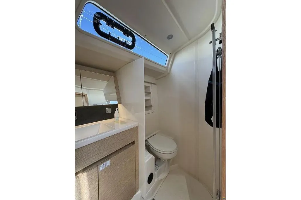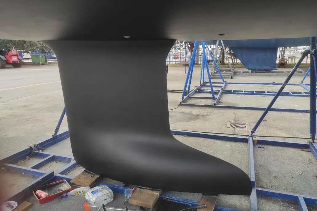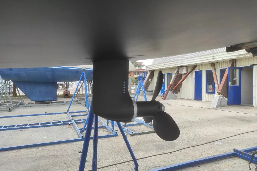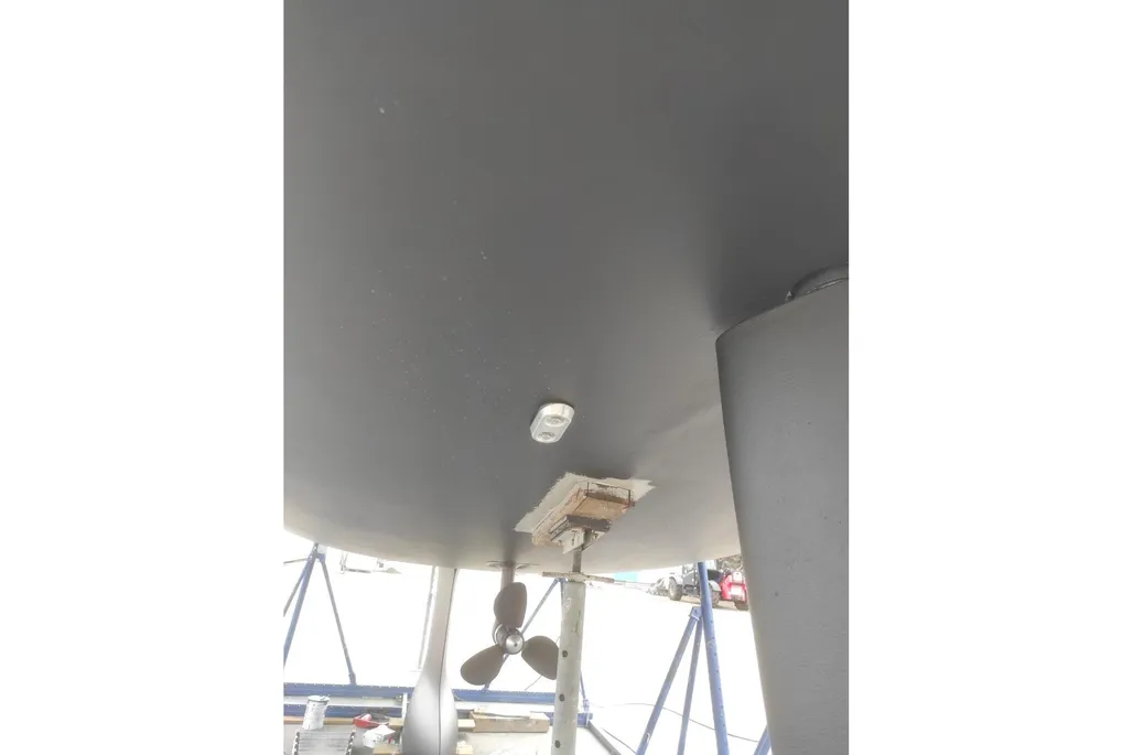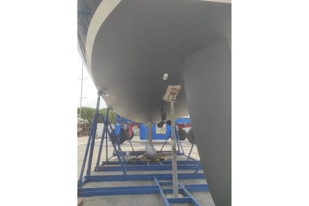 The inboard Yanmar engine, delivering 39 hp, is centrally located and equipped with a reliable 3-blade propeller, enhancing maneuverability and efficiency.