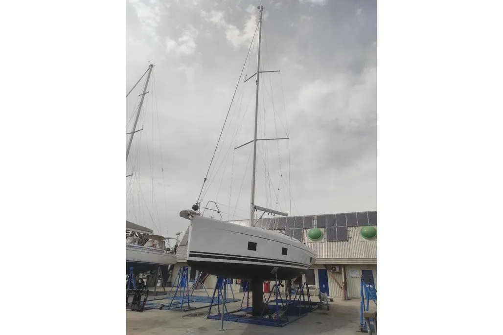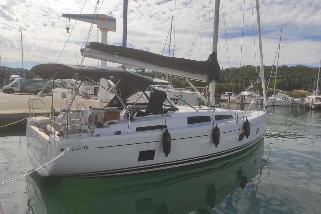 Introducing the 2022 Hanse 418, a stunning cruiser that combines elegance and performance. With an overall length of 12.4 meters, this monohull features a robust fiberglass hull and a full keel, ensuring stability and smooth sailing.